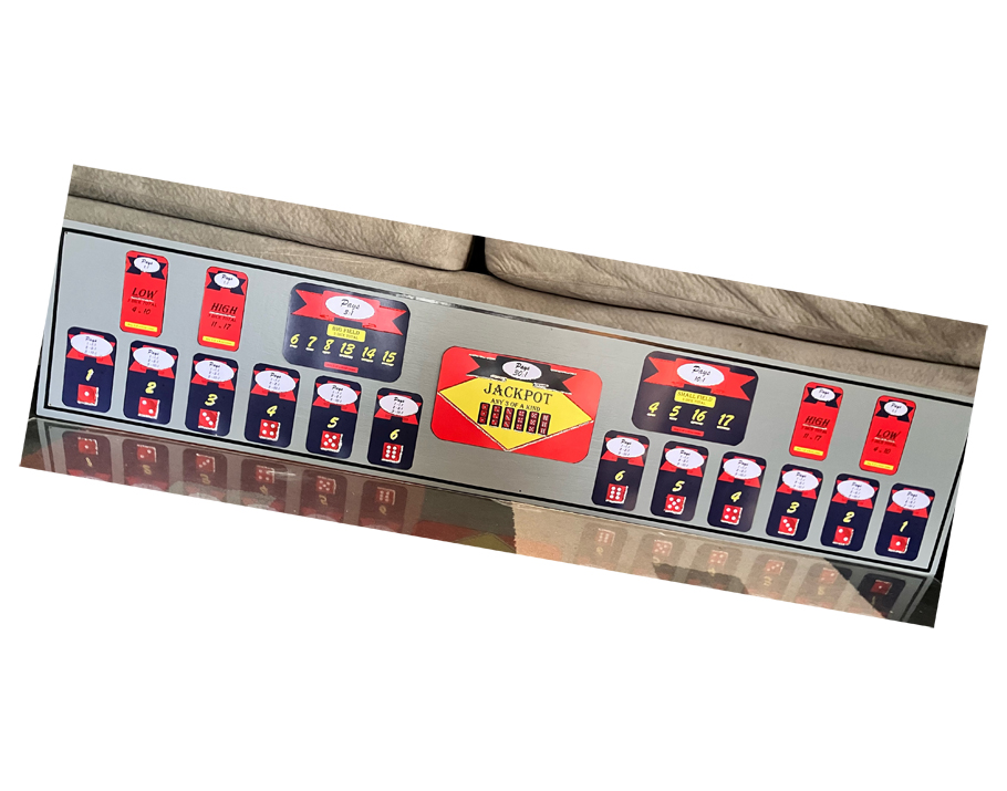 A game made popular with variations played in English Pubs and brought over to the US in the early 1800s. It was popular on the battlefield as it was easy to play and conceal when the soldiers' superiors came close, as gambling was not allowed. We love it as it is a fantastic addition to your casino party for variety and a great option for those that don’t wish to learn other games. This is a game you can walk up too and almost immediately understand and begin playing, similar to Money Wheel and Slot Machines. It gives options to those that want to play a game that is exciting, but does not require learning too many rules or playing against other players